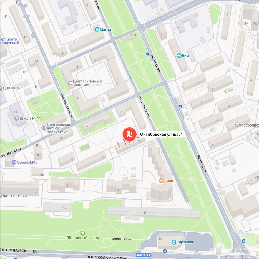 143402, МОСКОВСКАЯ ОБЛАСТЬ, Г.О. КРАСНОГОРСК, Г КРАСНОГОРСК, УЛ ОКТЯБРЬСКАЯ, Д. 1