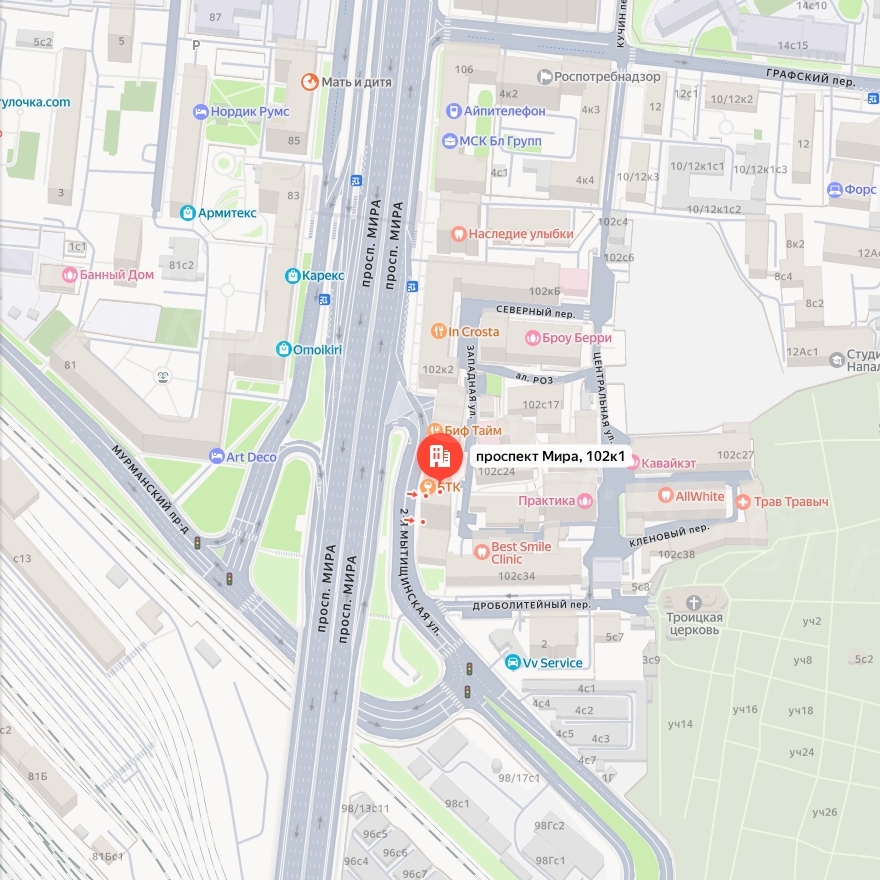 Адрес: г. Москва, проспект Мира, д. 102, корп. 1
