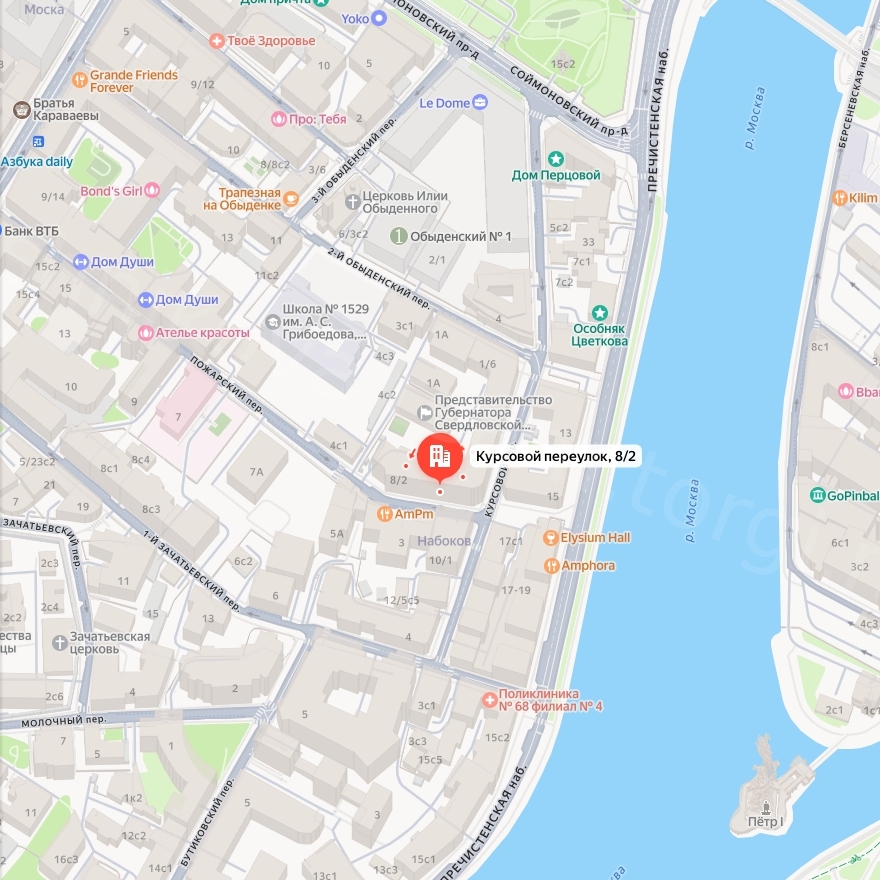 Адрес: Российская Федерация, город Москва, вн. тер. г, муниципальный округ Хамовники, переулок Курсовой, дом 8/2, помещение 1/П